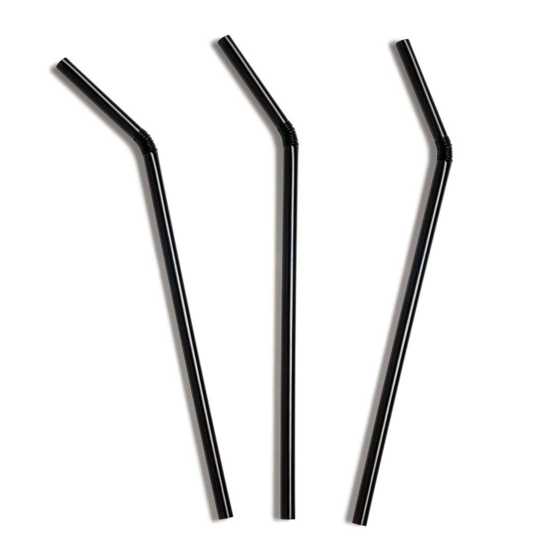 210mm x6mm Black Plastic Bendy Straws