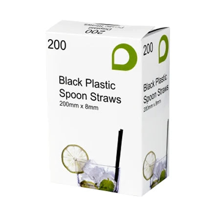 8mm x 200mm Black Spoon straws